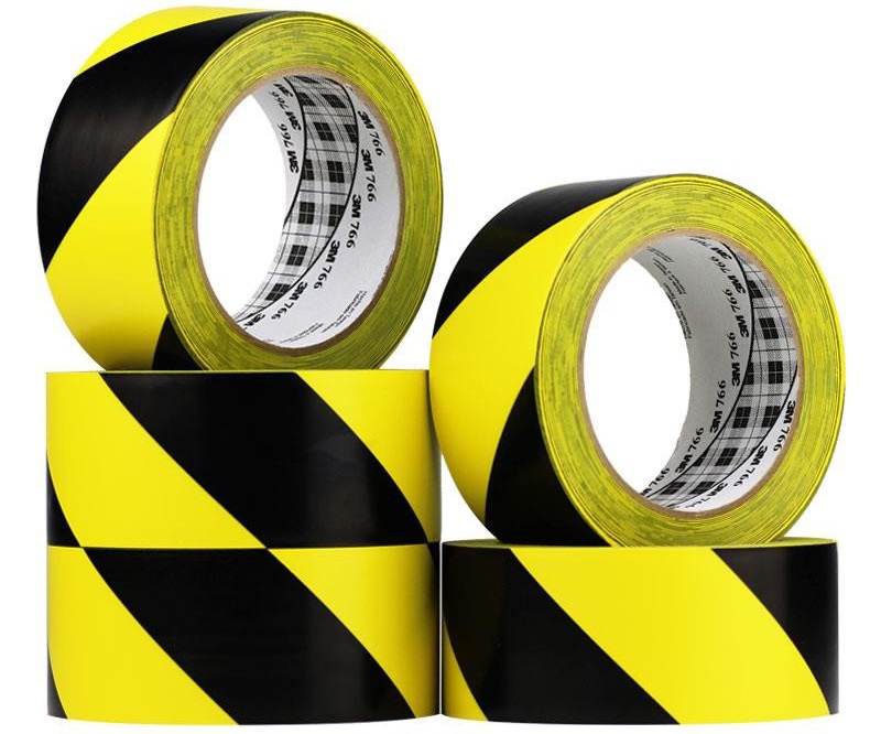Băng keo dán nền chịu nhiệt sọc vàng đen 50mm x 33m 3M 766 được làm từ lớp màng vinyl với keo cao su, thường được sử dụng để dán kẻ vạch, phân làn, phân đường.