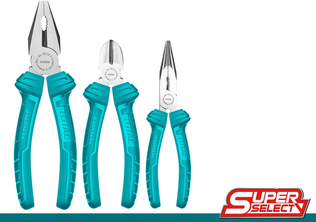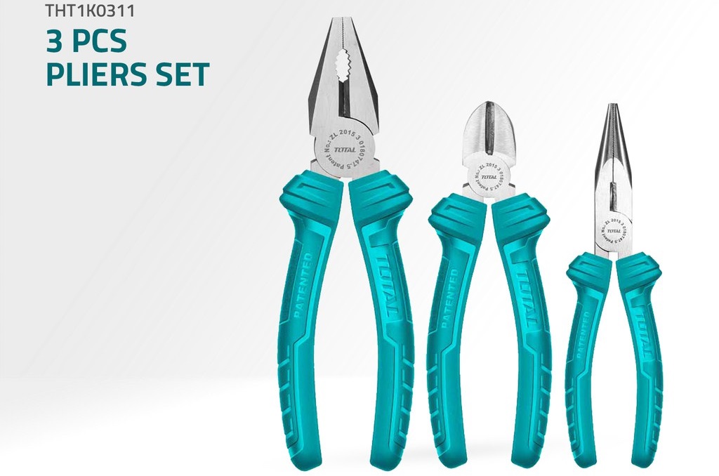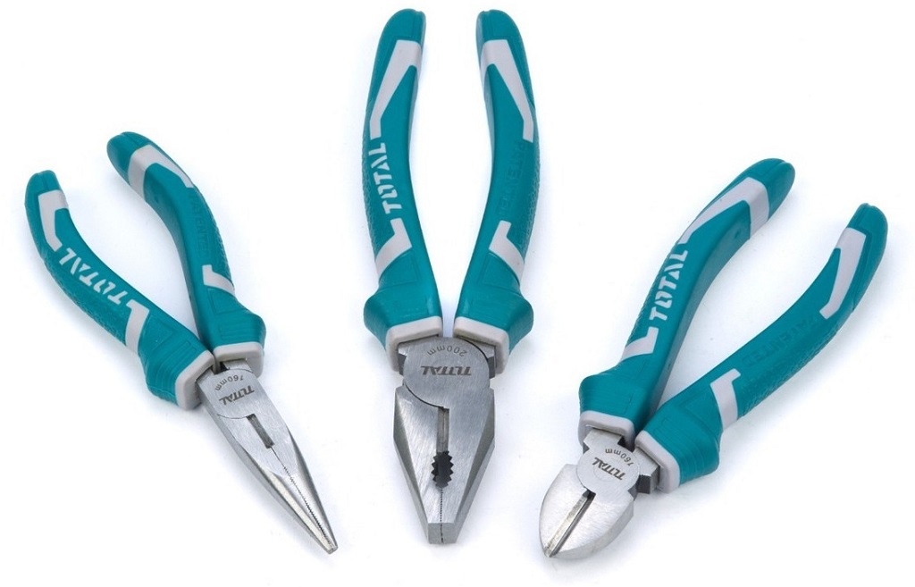 Bộ 3 kềm răng, kềm cắt và kềm mũi nhọn TOTAL THT1K0311 là một bộ công cụ đa năng được thiết kế để sử dụng trong nhiều công việc cắt, kẹp và tháo lắp.