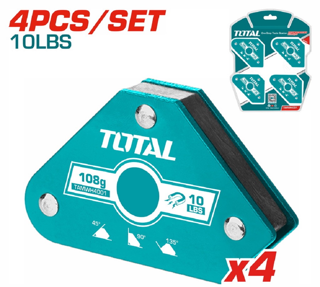 Bộ 4 ke góc nam châm hàn 3 góc TOTAL TAMWH4001 chịu được lực kéo 4.54kg/cái