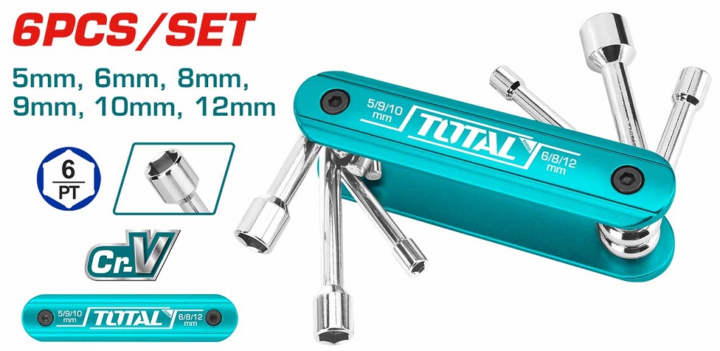 Bộ 6 chìa vặn ốc lục giác tiện dụng 5-12mm TOTAL THFND061 là một bộ dụng cụ cơ khí chuyên dùng để tháo lắp ốc vít có đầu lục giác.