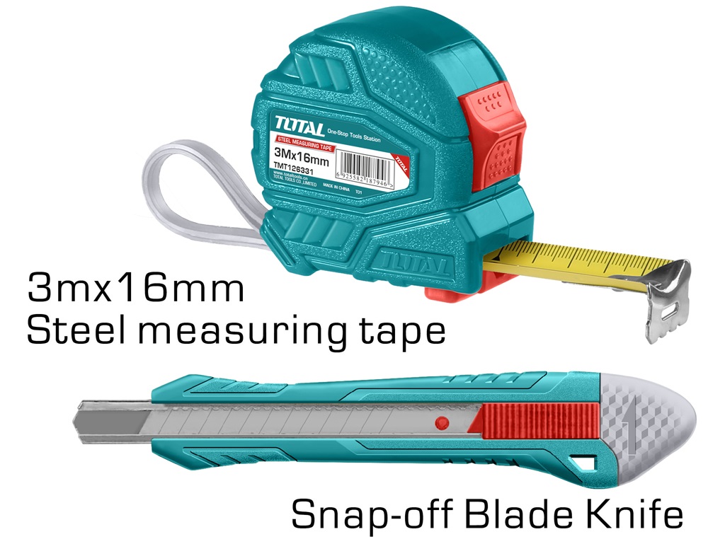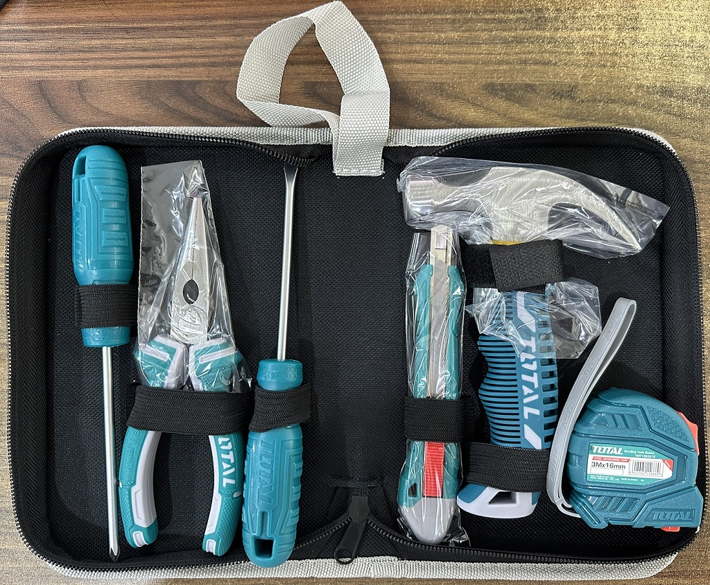 Đa dạng các công cụ: Bộ công cụ TOTAL THKTHP90066 bao gồm 6 dụng cụ khác nhau, cung cấp các công cụ cần thiết để thực hiện các công việc cơ bản. Điều này bao gồm tua vít, dao rọc giấy, kềm, thước và các công cụ khác.
