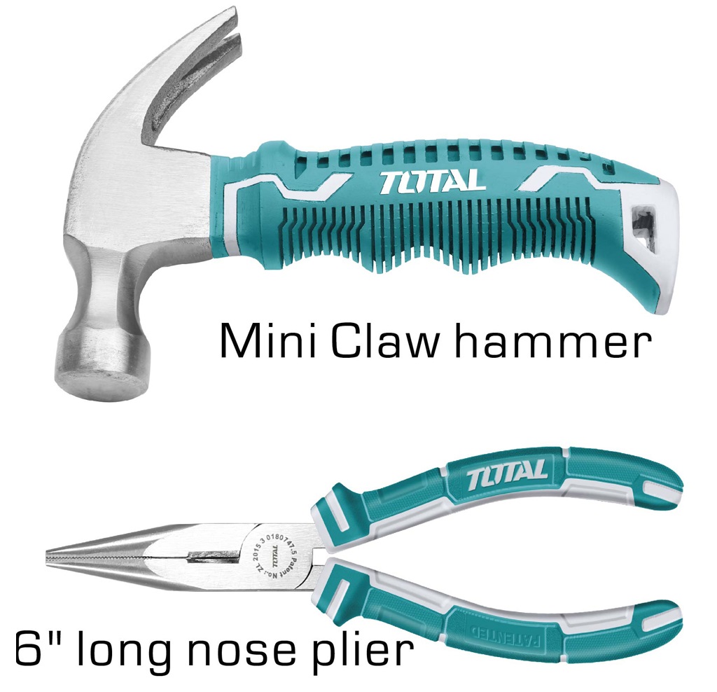 Bộ dụng cụ 6 món gồm búa, thước, dao, kềm, tua vít có hộp đựng TOTAL THKTHP90066 là một bộ công cụ đa năng được thiết kế để sử dụng trong nhiều công việc cắt, kẹp, đo đạt, tháo lắp và vặn vít