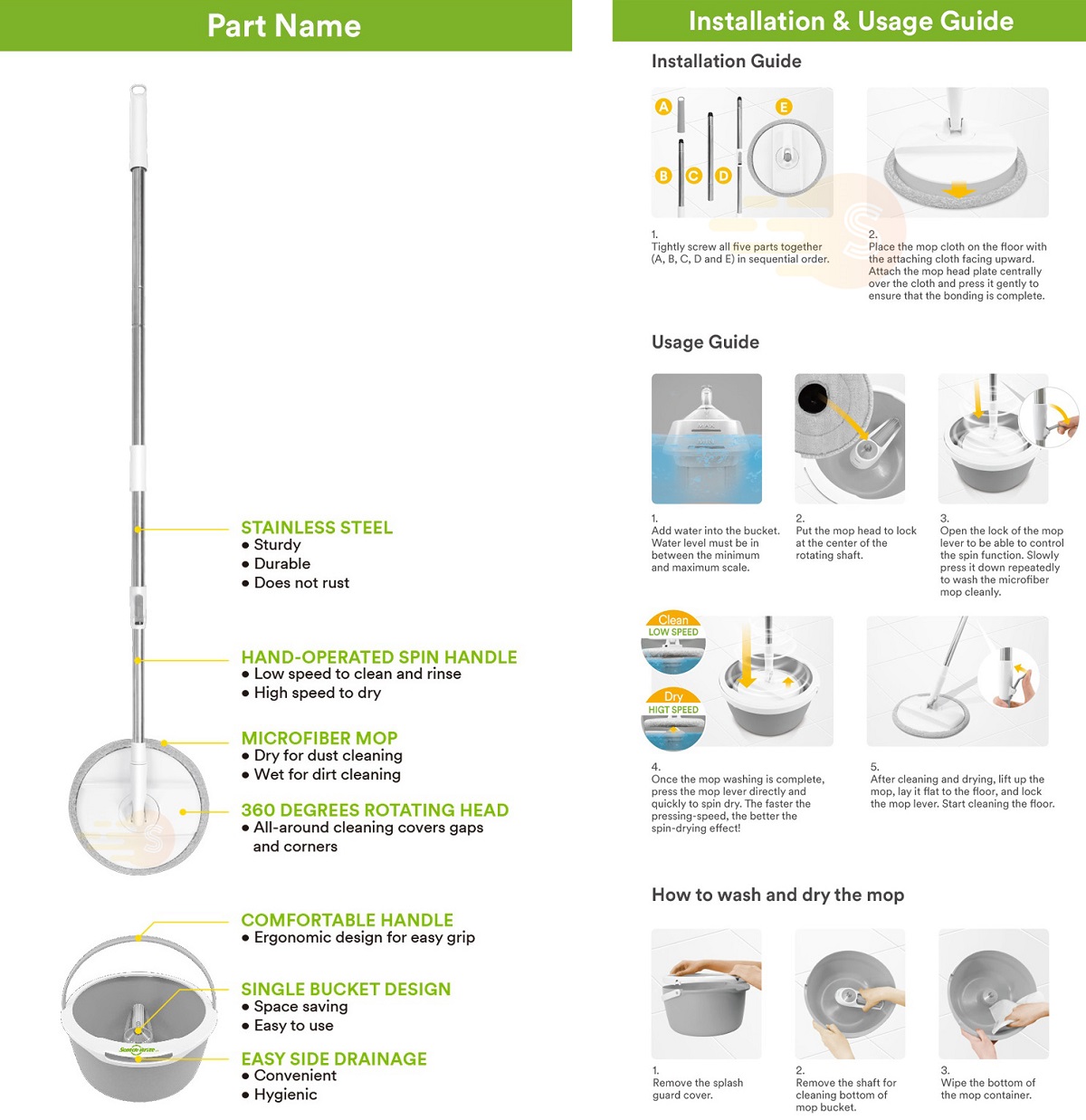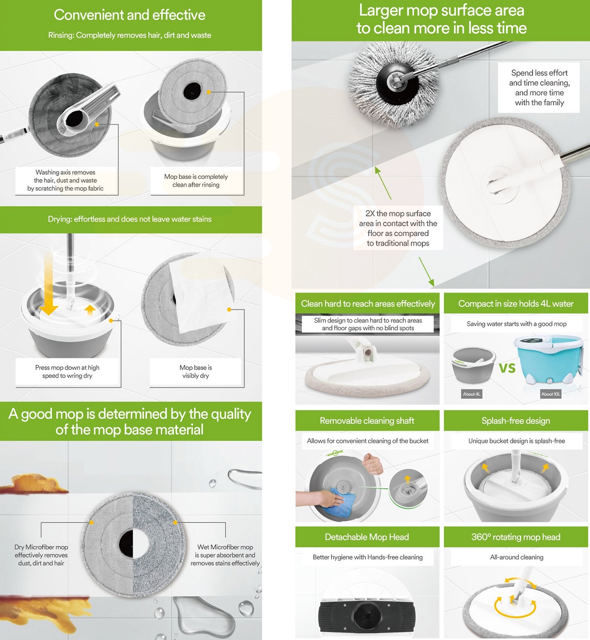 Bộ lau nhà 360 độ cải tiến mới nhỏ gọn cao cấp thông minh Scotch-Brite 3M BLN-360CT là cây lau 2 in 1: giặt và vắt khô trong cùng một chậu. Bông lau được làm bằng những sợi MICROFIBER quấn bụi theo xoáy tròn nên khi khô sẽ không để lại những vết hằn trên sàn nhà