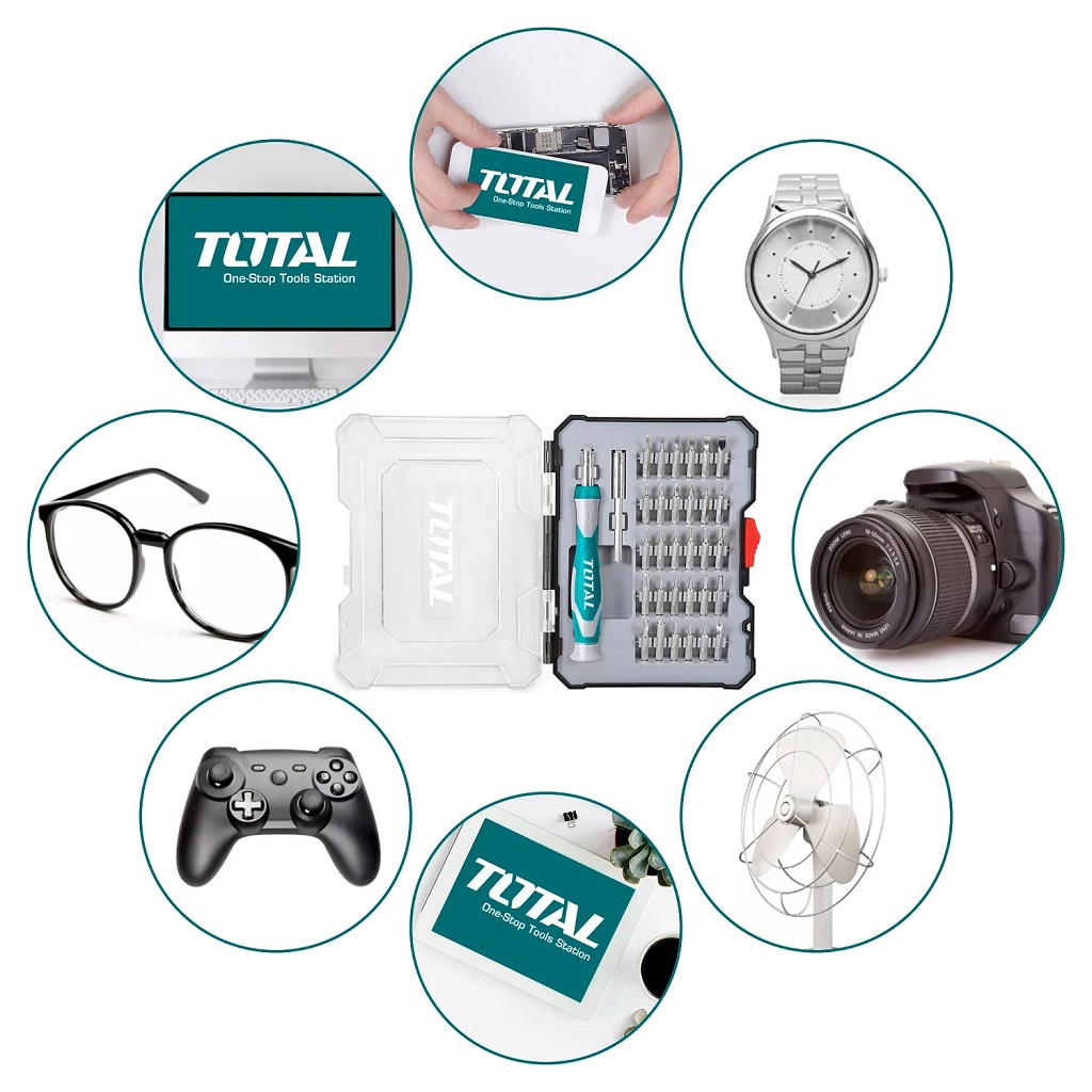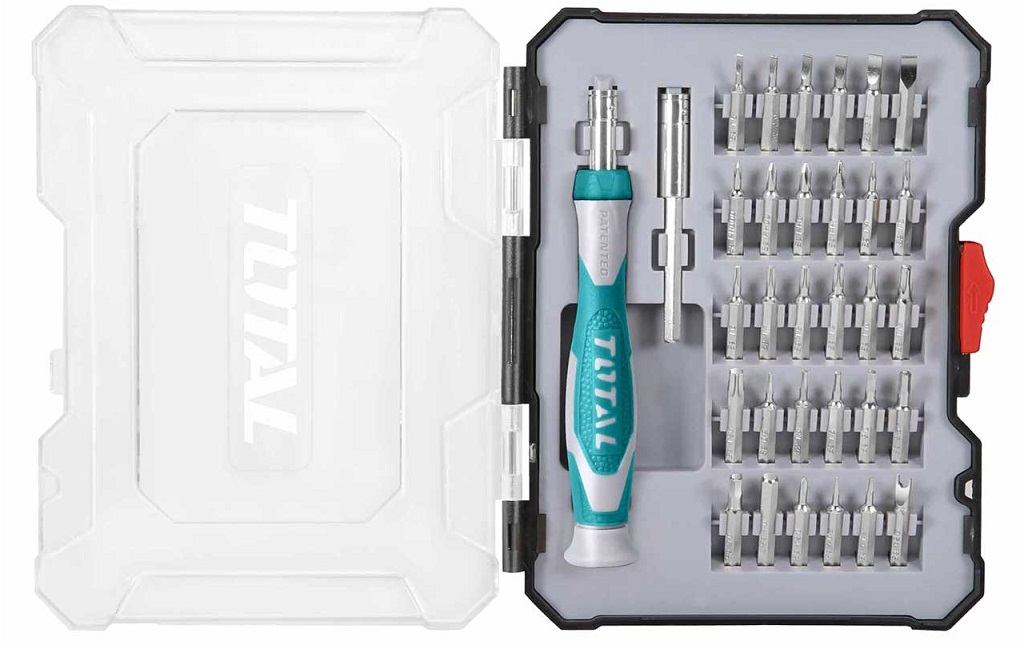 Bộ tua vít chuẩn 32 chi tiết TOTAL TACSD30326 là một bộ dụng cụ cơ khí chuyên dùng để sửa chữa điện thoại hoặc linh kiện điện tử nhỏ gọn
