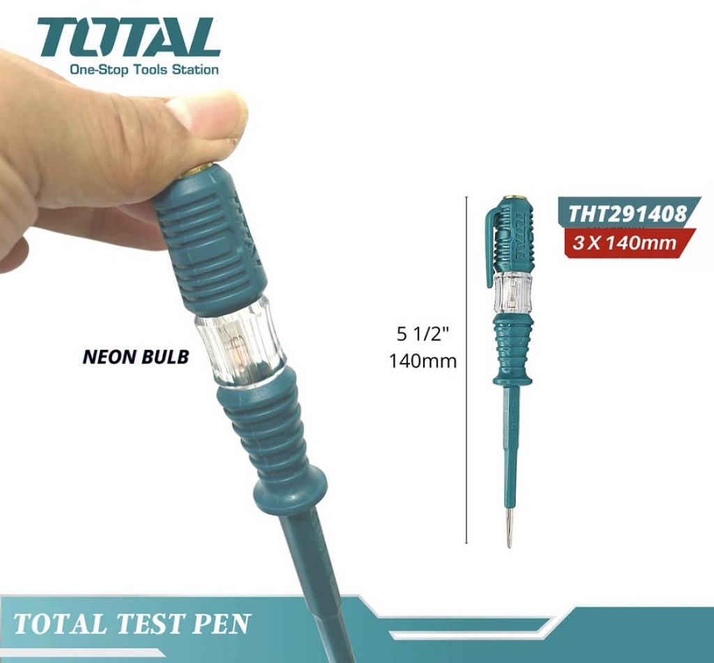Thiết kế tiện dụng: Bút thử điện TOTAL thường có thiết kế nhỏ gọn và tiện lợi. Nó có thể được cầm nắm dễ dàng và dễ sử dụng trong các môi trường làm việc khác nhau.