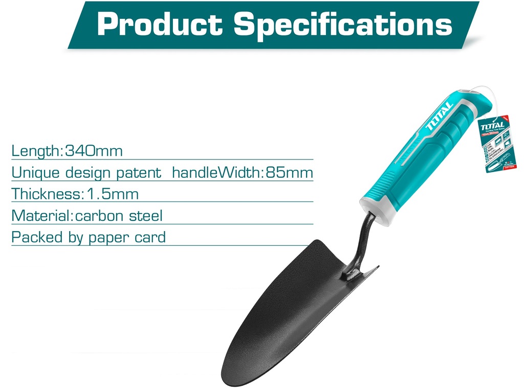Cây xẻng xúc đất làm vườn 340mm TOTAL THFTT858 là một công cụ đáng tin cậy và hiệu quả cho công việc làm vườn. Với tính năng nổi bật và thiết kế chất lượng, nó sẽ giúp bạn thực hiện các tác vụ xúc đất và chăm sóc cây cối một cách dễ dàng và hiệu quả.