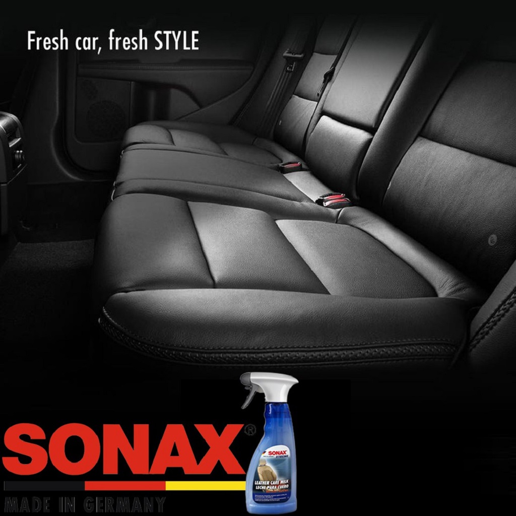 Chai xịt dưỡng da ô tô cao cấp Leather Care Milk Xtreme Sonax 254241 500ml để làm sạch và bảo dưỡng chuyên sâu da thật và da tổng hợp mịn như ghế da ô tô, sofa da, quần áo da, phụ kiện đồ da, da nội thất, v.v. Chứa dầu jojoba hấp thụ bảo dưỡng, mang lại sự mềm dễ chịu mà không có vẻ trơn trượt. Với hương thơm da thuộc dễ chịu.