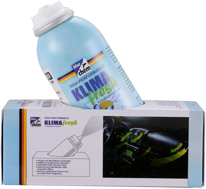 Chai xịt khử mùi và khử trùng máy lạnh và nội thất ô tô Bluechem 35140E sẽ làm sạch và khử trùng hệ thống máy lạnh và loại bỏ hiệu quả những mùi khó chịu, các vi khuẩn, ẩm mốc và các vi sinh vật. Công nghệ vệ sinh này sẽ làm sạch, giúp không khí trong xe được trong lành và tốt cho sức khỏe. Nó còn có tác dụng diệt những vi khuẩn, khử mùi trên các thiết bị trong xe, ghế nệm và thảm.