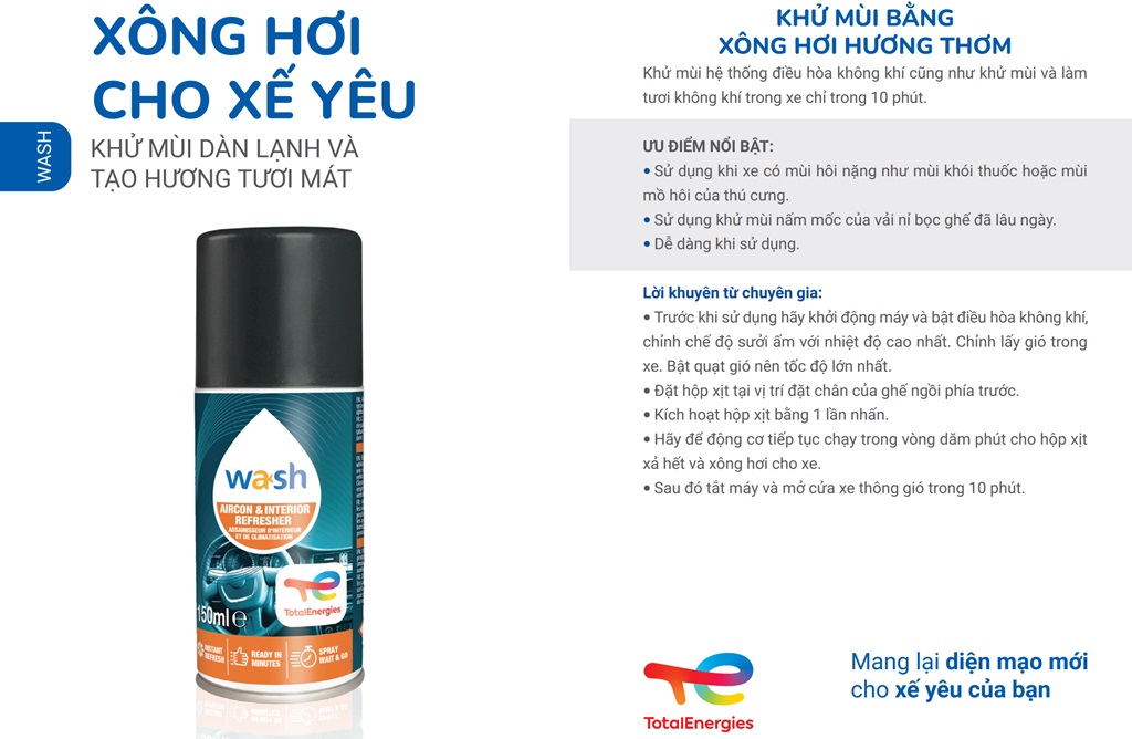 Chai xịt khử mùi và khử trùng máy lạnh Total Energies TE-AC150 150ml sẽ làm sạch và khử trùng hệ thống máy lạnh và loại bỏ hiệu quả những mùi khó chịu, các vi khuẩn, ẩm mốc và các vi sinh vật. Công nghệ vệ sinh này sẽ làm sạch, giúp không khí trong xe được trong lành và tốt cho sức khỏe. Nó còn có tác dụng diệt những vi khuẩn, khử mùi trên các thiết bị trong xe, ghế nệm và thảm.
