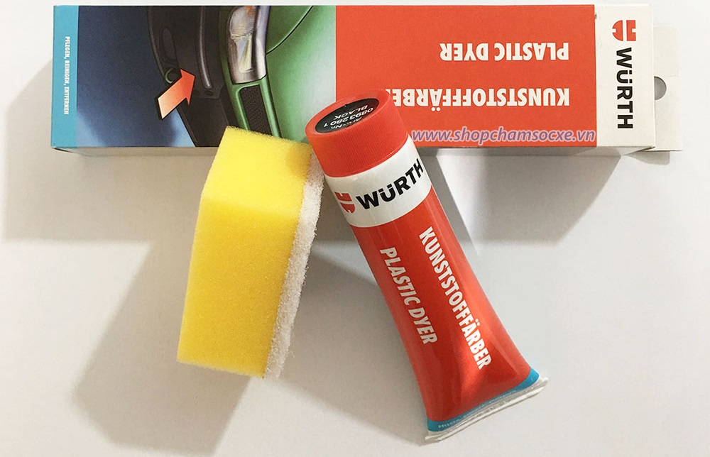 Dung dịch phục hồi nhựa đen nhám cao cấp Wurth WU-PHN75 có kèm mút sử dụng để tái tạo lại màu đen cho các chi tiết nhựa nhám màu đen trên xe.