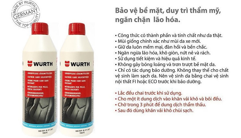 Kem bảo dưỡng da, ghế da chuyên dụng cho ô tô 500ml Wurth WU-DA500 được nghiên cứu và phát triển từ thương hiệu Wurth của Đức