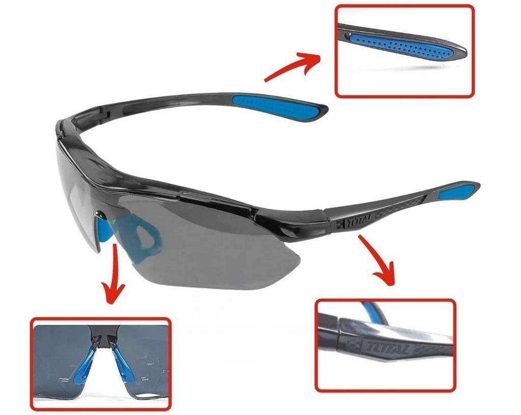 Kính bảo hộ lao động chống bụi và chống tia UV TOTAL TSP305 là sản phẩm chuyên dụng để bảo vệ mắt khi mài hoặc chà nhám gỗ, kim loại, đá, làm vườn hoặc sử dụng như kính mát đi đường