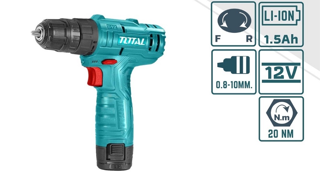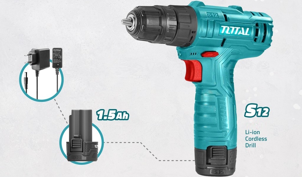 Máy khoan, vặn vít dùng pin 12V TOTAL TDLI12415 là một bộ dụng cụ nhỏ gọn và tiện dụng.