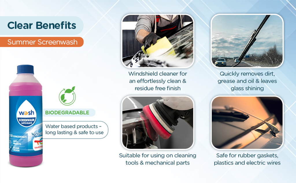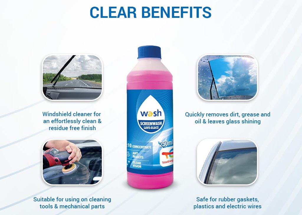 Đối với những người sử dụng ô tô thì chắc hẵn đã không ít lần bạn cảm thấy phiền toái với những vấn đề khách quan khó tránh khỏi trên chiếc ô tô chẵng hạn như kính lái xe bị ố, dính bẩn gây cản trở tầm nhìn của ban. Đây lại là một vấn đề rất khó để xử lý ổn thoả. Trong trường hợp thế này thì Nước rửa kính lái đậm đặc tỉ lệ 1:10 Total Energies TE-SW250 250ml sẽ là phương pháp tốt nhất để làm sạch kính ô tô của bạn.