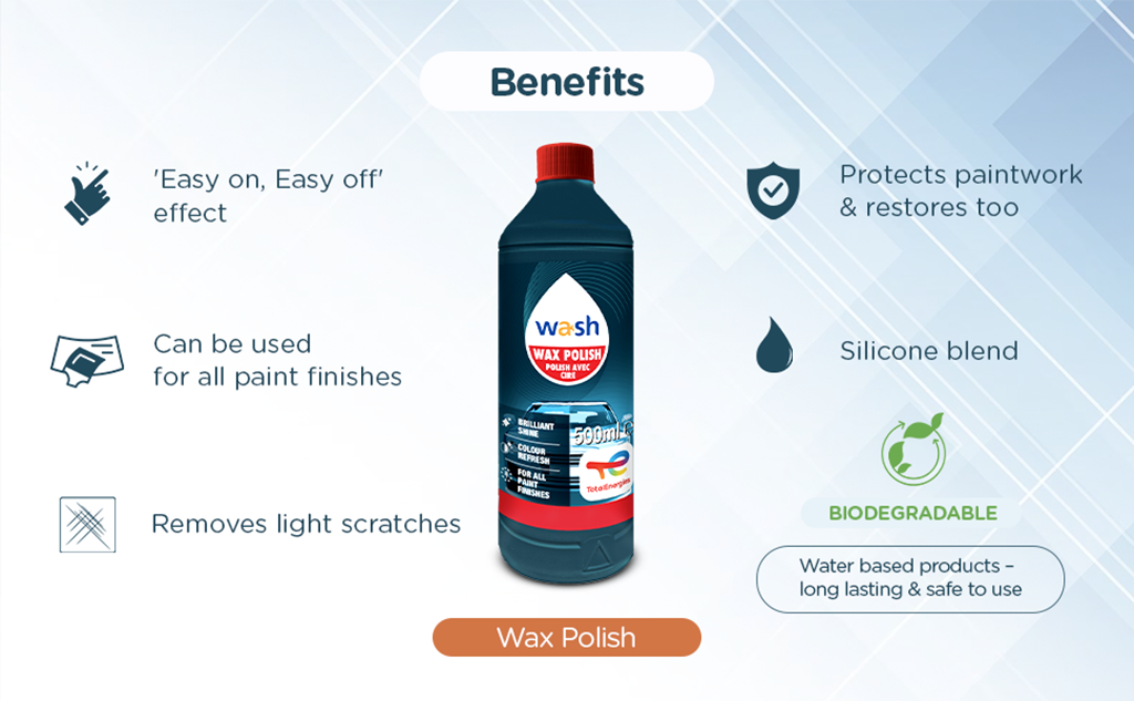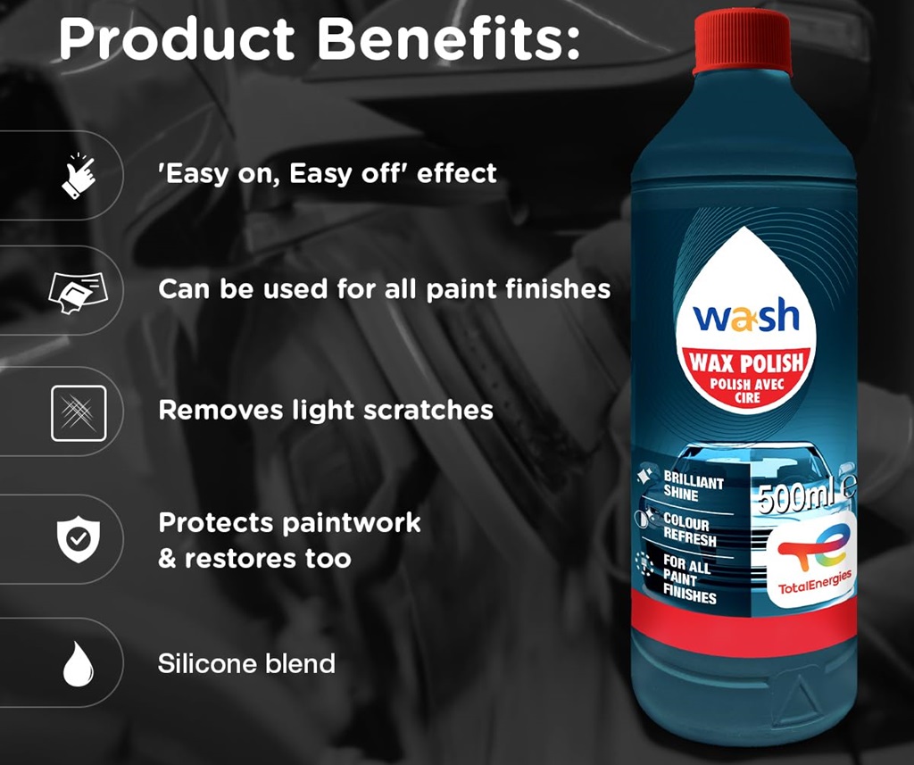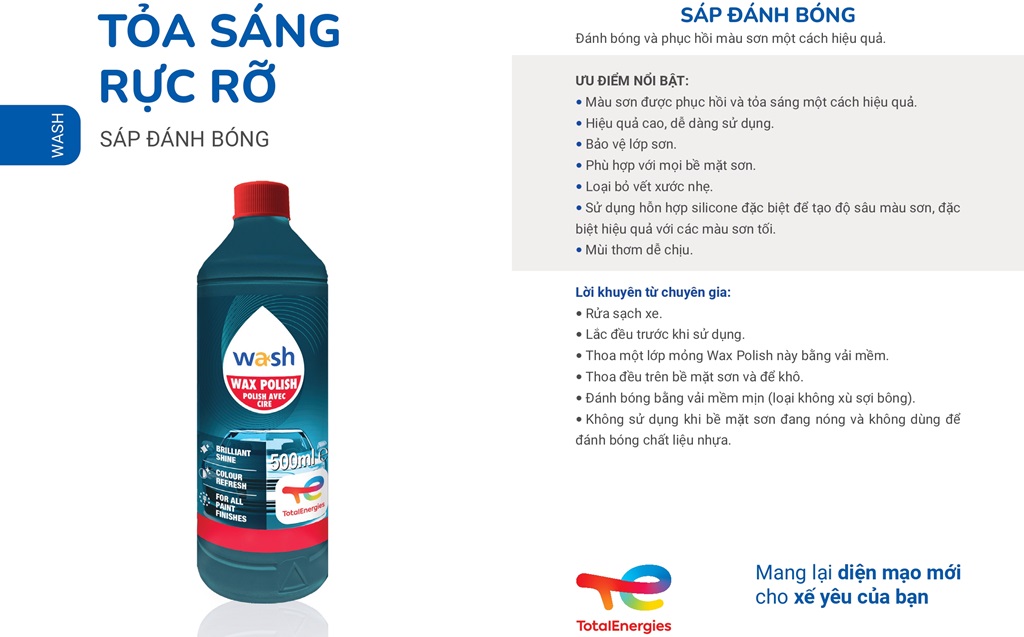 Sáp đánh bóng và bảo vệ sơn xe ô tô Total Energies TE-WP500 500ml dùng để đánh bóng các lớp sơn bị mờ, bị phong hóa, đốm nước và phục hồi sơn bị xỉn màu. Ứng dụng công nghệ bảo vệ sơn đặc biệt Hybrid NetProtection tạo ra độ bền, độ mịn và độ ổn định của lớp phủ bảo vệ. Bề mặt trở lên sáng mịn, độ bóng cao và hiệu ứng lá sen nổi bật.