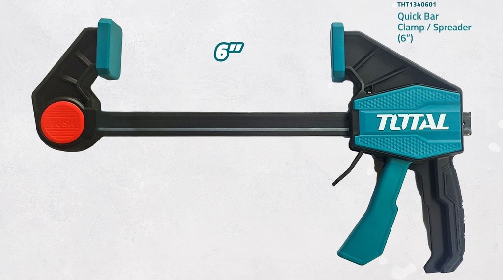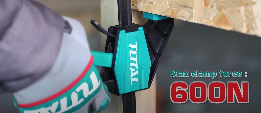 Thanh kẹp nhanh có lực kẹp 60kg TOTAL THT1340601 và THT1340602 được thiết kế với thân kẹp bằng thép chuyên dụng, tay kẹp được làm từ nhựa nhám giúp cầm nắm chắc chắn, đầu kẹp cao su giúp giữ vật kẹp tốt hơn.