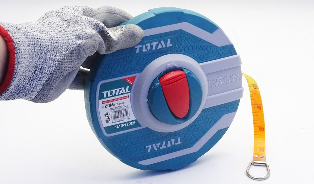 Thiết kế tiện dụng: Thước dây sợi thủy tinh TOTAL TMTF12206 thường có một cần quay để thu hồi dây nhanh chóng và dễ dàng.