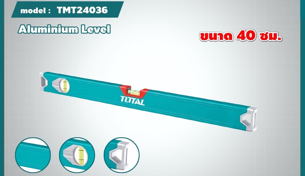 Thước thủy 40cm có 2 mức thủy ngân TOTAL TMT24036 là sản phẩm chuyên dụng để đo đạc sự cân bằng của chi tiết, với 2 mức thủy ngân khác nhau giúp bạn đo được ở nhiều góc độ và vị trí khác nhau.