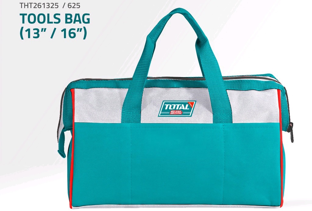 Túi xách đựng dụng cụ đồ nghề TOTAL THT261325 (13in), THT261625 (16in) có nhiều ngăn chứa lớn và nhỏ được làm từ sợi vải Polyeste bền bỉ và chắc chắn, hổ trợ bạn mang theo sản phẩm ở bất cứ nơi đâu